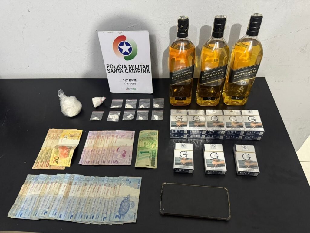 Também foram apreendidos 13 carteiras de cigarros contrabandeados da marca Gift, R$ 243 em dinheiro trocado, um celular e três garrafas de whisky cuja coloração levantou suspeita de falsificação.