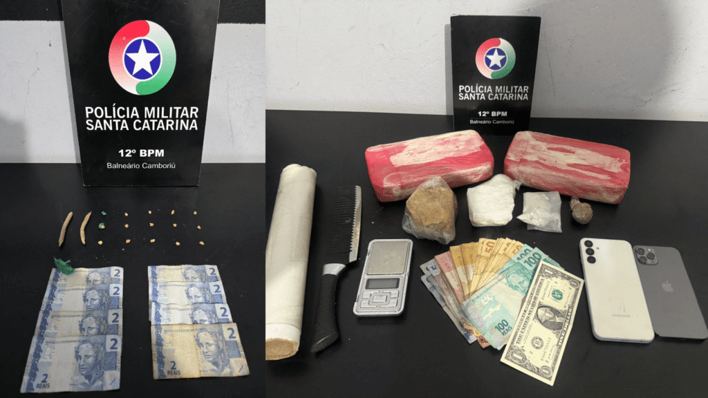 A segunda ocorrência foi registrada no Bairro dos Municípios, em Balneário Camboriú. Durante patrulhamento na 5ª Avenida, policiais observaram dois jovens entrando rapidamente em um minimercado ao perceberem a aproximação da viatura. O local é conhecido por denúncias de comércio de drogas.