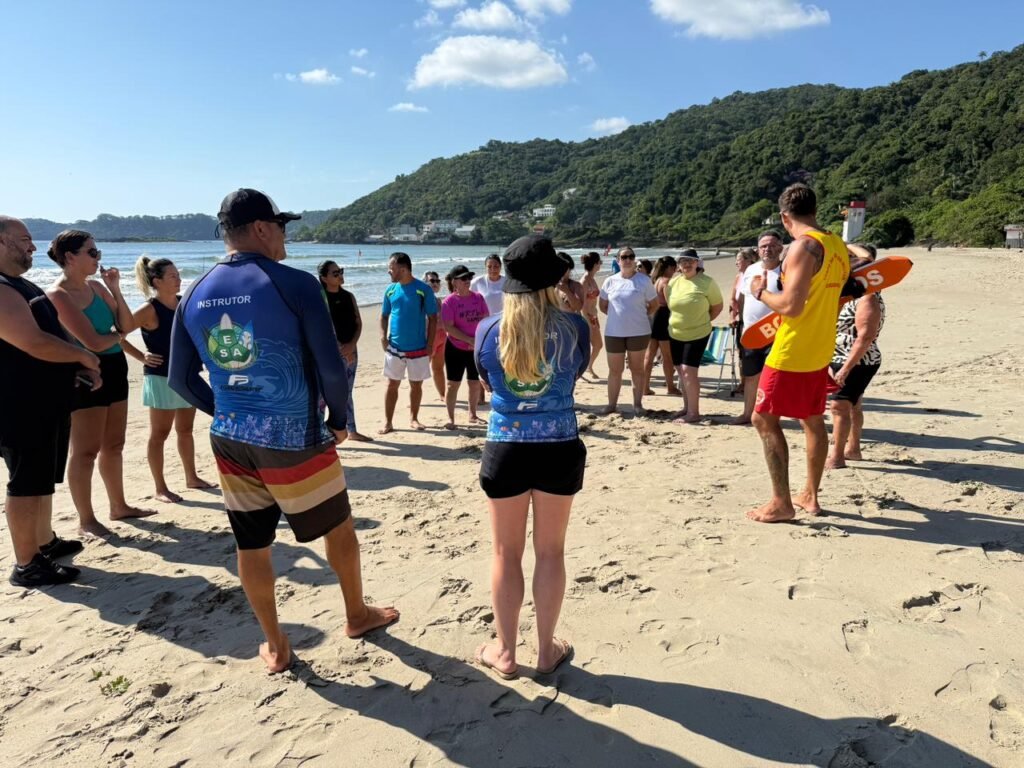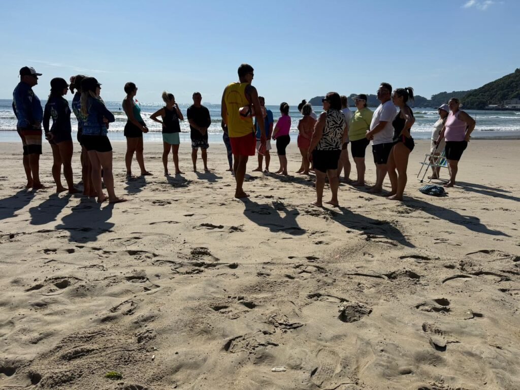 Servidores que atuam no atendimento à população idosa em Itajaí participaram, na manhã desta segunda-feira (2), de uma capacitação com aula introdutória de surf. A atividade ocorreu como parte de um estudo da Prefeitura para avaliar a implantação de aulas gratuitas da modalidade voltadas aos idosos atendidos pela rede municipal.